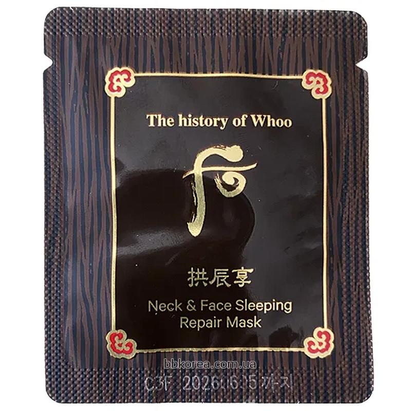 Описание товара Прекрасная омолаживающая ночная маска The History of Whoo Neck & Face Sleeping Repair Mask поможет восстановить вашу кожу пока вы спите. Продукт не забивает поры, не оставляет после себя липкости и жирности, быстро впитывается. Средство относится к премиальной косметике, оно изготовлено по строгой рецептуре с использованием только натуральных качественных компонентов. В составе средства нет вредных химических соединений. Маска содержит экстракт золота, который обладает регенерирующим и укрепляющим действием, помогает бороться с воспалениями и высыпаниями, улучшает проницаемость других компонентов. Натуральные экстракты целебных трав увлажняют и питают, помогают настроить кожный покров на процесс омоложения и восстановления, стимулируют выработку коллагена и эластина. Маска способствует разглаживанию морщин, подтяжке дряблых участков, сужению пор и выравниванию тона лица, также она глубоко питает и увлажняет. Способ применения Нанесите этот крем на лицо и шею как последний шаг в процедуре основного ухода за кожей. Помассировать нежными движениями снизу вверх 2-3 минуты. Рекомендуем использовать ночную маску 2-3 раза в неделю. Состав Shea Butter, Curcuma Longa (Tumeric) Root Extract, Lactobacillus / Soybean Ferment Extract, Saccharomyces / Barley Seed Ferment Filtrate, Saccharomyces / Potato Extract Ferment Filtrate, Macadamia Nut Oil, Cocoa Extract, Gold, Amber