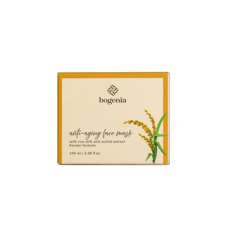 Антивікова маска для обличчя, шиї, зони декольте Bogenia Face Mask Anti-Aging з екстрактом рисового молочка й орхідеї Маска для обличчя з розкішним складом, розробленим на основі корейських формул, робить вашу шкіру гладкою, пружною, зволожує її та запобігає появі пігментації, усуває сліди втоми. Засіб уповільнює процеси старіння, захищає від руйнівного впливу довкілля. Антивікова маска ефективна для всіх типів шкіри, зокрема для чутливої. Активні компоненти маски: рисове молочко — має потужну відновлювальну дію, сприяє зволоженню шкіри, злегка освітлює епідерміс і вирівнює тон обличчя, має антиоксидантну дію, чим перешкоджає передчасному руйнуванню клітин від несприятливих навколишніх чинників; екстракт орхідеї — живить шкіру амінокислотами, заспокоює подразнення, зміцнює стінки судин, нейтралізує шкідливу дію вільних радикалів, підвищує еластичність і опірність дерми небезпечним чинникам. Результат у разі регулярного застосування антивікової маски для обличчя Bogenia: -збільшення щільності шкіри; - підвищення гладкості та пружності; - освітлення пігментних плям; - рівніший колір обличчя; -свіжий, відпочилий вигляд.