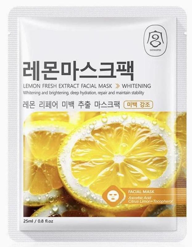 Маска для лица с лимоном Gong Pei Lemon Fresh Extract Facial Mask 25 мл – это восстанавливающая маска с экстрактом лимона, которая осветляет, тонизирует и укрепляет кожу. Она помогает устранить пигментацию, выровнять тон лица и защитить от внешних факторов. - Осветление и ровный тон – экстракт лимона помогает уменьшить тёмные пятна и придаёт коже сияние. - Антиоксидантная защита – витамин C нейтрализует свободные радикалы, замедляя процессы старения. - Восстановление и укрепление – способствует регенерации клеток и повышает эластичность кожи. - Контроль жирности – помогает уменьшить избыточное выделение себума и сужает поры. Маска подходит для всех типов кожи, особенно для тусклой и утратившей естественное сияние.