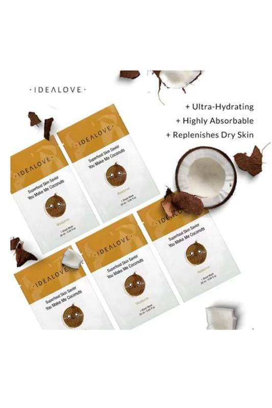 Superfood skin savior, idealove, маска із суперфудами, кокос, 5 шт. по 20 мл
