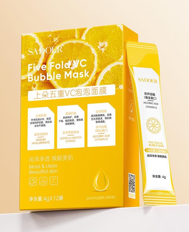 Очищающая пузырьковая маска для лица Sadoer Five Fold VC Bubble Mask с витамином С 4г Маска для лица -- идеальное решение для быстрого и эффективного очищения кожи. Необычный формат средства - эффект пузырящейся пены -- позволит превратить обычную процедуру удаления загрязнений с кожи в настоящую СПА-процедуру. Пенящаяся тканевая маска создана специально для максимально глубокого очищения пор от загрязнений, остатков макияжа и излишков себума. При взаимодействии с воздухом маска активируется и образует насыщенные кислородом пузырьки. Они создают на коже эффект микромассажа, слегка разогревая её и усиливая обменные процессы в клетках. Вытяжка из бамбука призвана обеспечить оптимальный уровень увлажнения, подтянуть и укрепить контуры лица, сделать кожу более гладкой и упругой. Образует роскошную пену, а прозрачные очищающие частицы преображают кожу, насыщая ее кислородом. 3D-микропузырьки отлично пенятся, растворяют загрязнения, удаляют отмершие клетки и макияж, а также выводят токсины! Способ применения: Используйте маску 1-2 раза в неделю. Нанесите ее на очищенную кожу после умывания и применения лосьона. Распределите равномерно по лицу, подождите 10-15 минут. После этого смойте маску большим количеством теплой воды. Пользоваться пенкой или гелем не нужно. Когда маска смыта, воспользуйтесь кремом, который подходит вашему типу кожи.