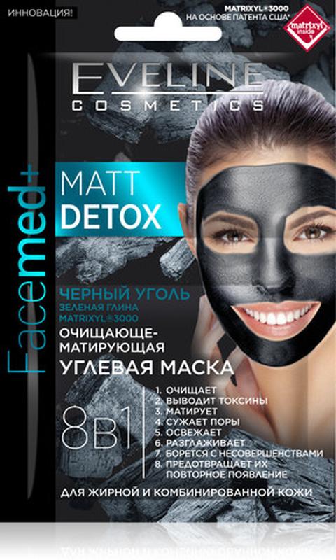 Маска для кожи лица угольная для жирной и комбинированной кожи eveline facemed+ matt detox...