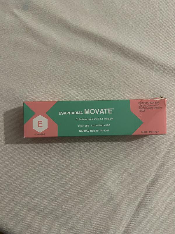 Гель Esapharma Movate з пропіонатом клобетазолу 0,5 мг/г, який використовується для освітлення шкіри та лікування гіперпігментації. Наносять тонким шаром як маску.