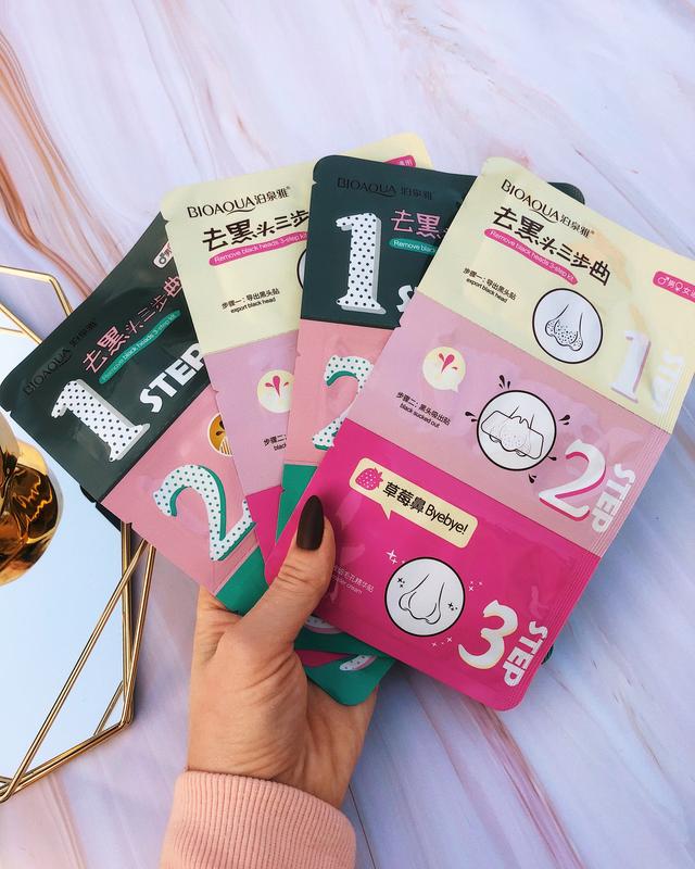 Маска 3в1 от чёрных точек Надоели черные точки на носу? Представляем вам маску 3в1 от BIOAQUA, которая имеет уникальную систему очистки от ненавистных черных точек. Трехступенчатая система очистки пор Remove Black Heads 3-step Kit Pink представляет собой набор из трех средств, которые эффективно очистят вашу кожу, избавят от мелких несовершенств и выравни ее тон. В состав первой распаривая сыворотки входят экстракты фруктов и растений, которые проникают внутрь пор, растворяют черные точки и выталкивают их на поверхность кожи. На втором этапе вы удаляете остатки этих загрязнений с помощью маски-пленки. Последнее средство, успокаивающее тоник на основе алоэ, стягивает поры, устраняет жирный блеск на коже и делает ваше лицо более гладким и свежим, не давая черным точкам образовываться снова. применение: 1. Очистите кожу чистой водой, положите «Шаг 1» на нос. Затем через 15-20 мин. можно снимать его. 2. Очистите нос снова водой {нос должен быть влажным}, положите «шаг 2» и подождите 10-15 мин, когда патч «шаг 2» полностью высохнет, снимите его. 3. Положите «шаг С» на нос. Через 5-10 мин. можно снять.