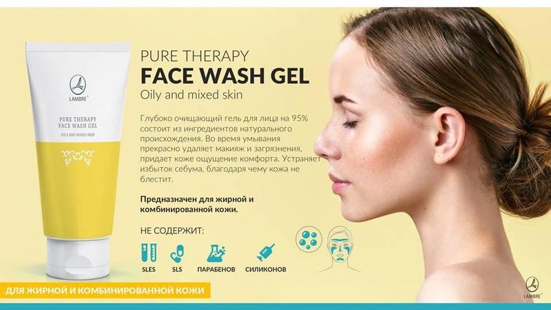 Очищающий гель для жирной и комбинированой кожи лица от lambre 120 мл