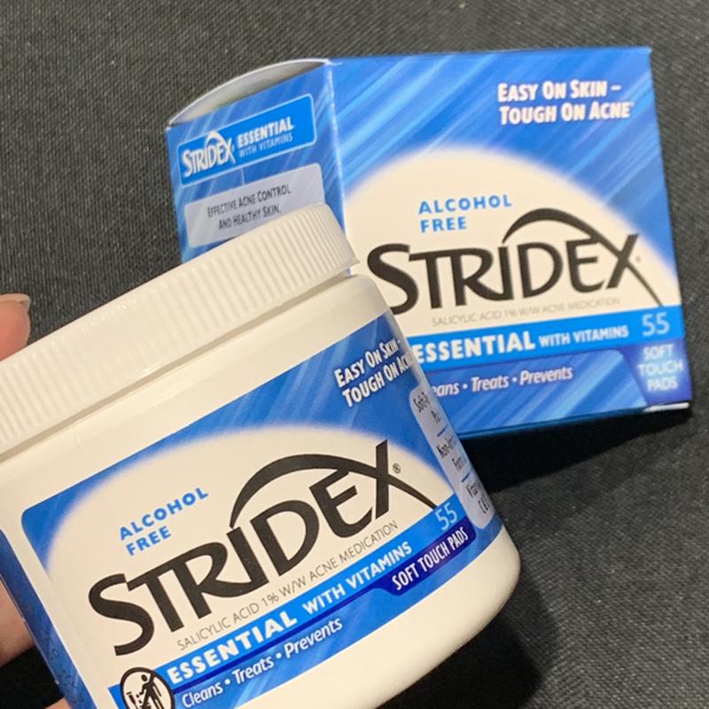 Очищающие диски от акне без спирта Stridex Single-Step Acne Control essential with vitamins Salicylic Acid 1% 55шт Массовая доля салициловой кислоты 1 % – средство от акне Эффективный контроль акне и здоровая кожа Содержит важные витамины С и Е для поддержания здоровья кожи