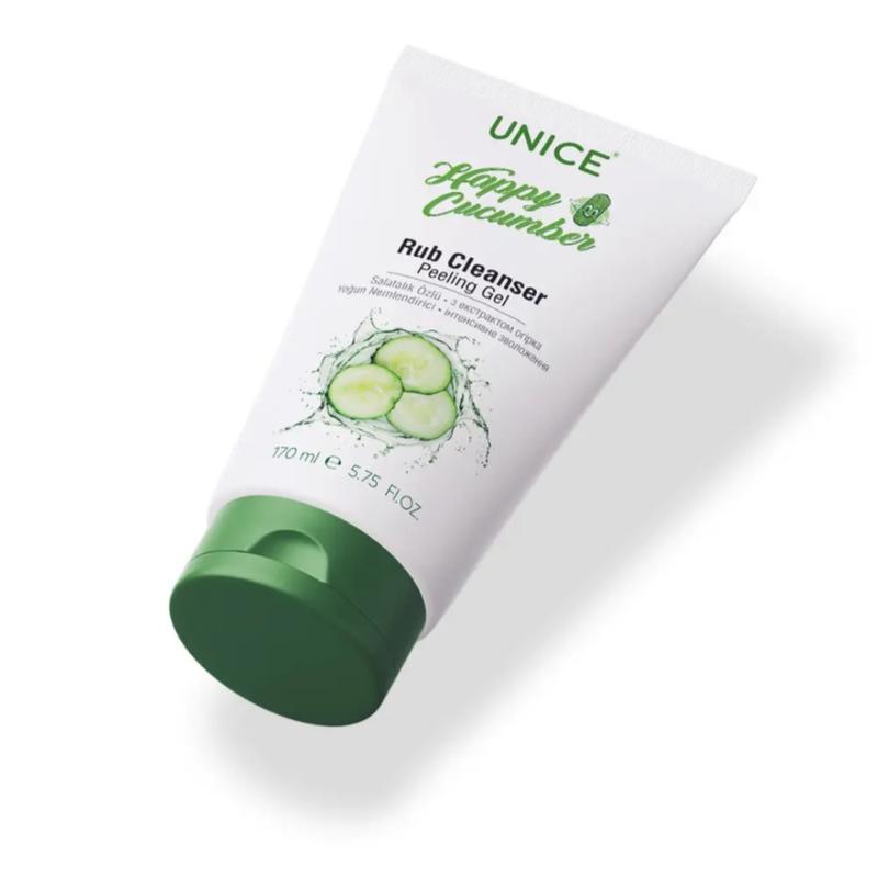 Гель-пілінг Unice, що містить натуральні екстракти огірка та перцевої м'яти, cпеціально розроблений для шкіри обличчя, рук і ніг, які зазвичай зазнають несприятливого впливу зовнішніх факторів. Засіб допомагає видалити зі шкіри мертві клітини, забруднення та шкірний жир із пор, водночас утримуючи вологу в епідермісі.