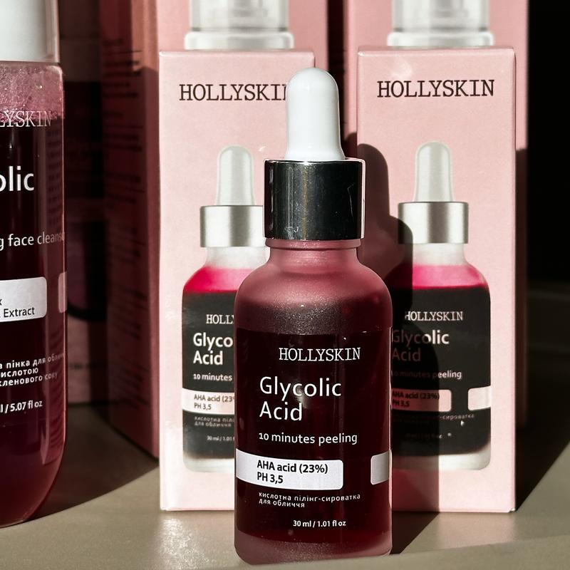 ♥️Кислотная пилинг-сыворотка для лица HOLLYSKIN Glycolic Acid♥️ Цена 292 грн ♥️Кислотная пилинг-сыворотка мгновенно улучшает цвет и микрорельеф лица, позволяет коже сиять. Мягко отшелушивает отмершие клетки, увлажняет и освежает, уменьшает видимость возрастной и сезонной пигментации, устраняет постакне. При регулярном использовании уменьшает глубину возрастных и разглаживает мимические морщины, делает кожу гладкой и шелковистой. Гидролат розы и масло из семян моркови в составе предотвращают пересушивание кожи, восстанавливают упругость и естественный тонус, устраняют видимые проявления усталости. Способ применения: нанесите небольшое количество пилинг-сыворотки на очищенную и сухую кожу лица во время вечернего ухода. Оставьте на 7-10 минут, затем тщательно смойте пилинг едва теплой водой. Внимание! В первый день максимальное время использования 5 мин. При чувствительной коже может быть незначительное пощипывание, жжение и легкое покраснение (получайте области вокруг глаз, губ, крыльев носа и слизистых оболочек). После использования средства нанесите успокаивающий крем. Применяйте пилинг-сыворотку 1-2 раза в неделю с дополнительным использованием солнцезащитного крема. Предостережение: перед использованием рекомендуем протестировать средство на небольшом участке кожи. Не наносите на поврежденную кожу! Избегайте попадания в глаза! ВНИМАНИЕ! Не наносите продукт на влажной коже. Полка применения средства используйте солнцезащитный крем с высоким фильтром SPF 30 и выше, и, по возможности, уменьшите время пребывания на солнце. Если возникает значительное раздражение, прекратите использование и обратитесь к врачу. Храните в недоступном для детей месте.