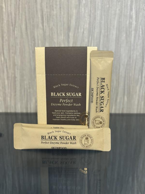 Ензимна пудра з чорним цукром Skinfood Black Sugar Perfect Enzyme Powder Wash 1.2 g Чорний цукор і натуральні фруктовий фермент папаї і екстракти фіги видалять частинки омертвілої шкіри одночасно надавши заспокійливий та протизапальний ефект, а лактобионовая кислота м'яко активізує відновлювальні процеси шкіри затримуючи вологу, робить шкіру м'якшою і еластичнішою.. Як використовувати 1. Відкрити пакет і висипати на долоню. 2. Додати трохи води (буквально трохи, краплями) на порошок і розтерши між долонями до утворення рясної піни. 3. М'яко помасажуйте піну на обличчі круговими рухами. 4. Змийте теплою водою. 5. Нанесіть зволожуючий крем. Використовуйте один раз на тиждень як крок очищення/відлущення. Вартість вказана за 1 саше.