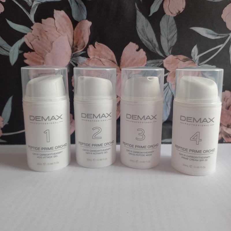 Объем: 20мл, 20мл, 20мл, 20мл Инновационная терапевтическая карбоксисистема – «умная» ДНК-РНК технология на основе мультипептидного комплекса, полинуклеотидов и стволовых клеток орхидеи для омоложения, ревитализации, интенсивной коррекции дегенеративных процессов в коже. 1. КИСЛОТНЫЙ ГЕЛЬ, pH=2.2, суммарно кислот 42%, 150 мл Комплекс кислот создает среду для реакции карбокситерапии, глубоко увлажняет и реструктурирует кожу, улучшает цвет лица, снимая пастозность и сухость. Стимулирует синтез собственного коллагена, сокращает морщины, освещает пигментацию. Экстракт орхидеи, пировиноградная кислота 10%, фитиновая кислота 7%, экстракт розы, феруловая кислота 6%, лактобионовая кислота 6%, миндальная кислота 6%, мочевина, транексамовая кислота 2%, экстракт лаванды, салицилат , винная кислота 1,5%, гликолевая кислота 1%, стволовые клетки орхидеи, ниацинамид 1%, молочная кислота 1% 2. ГЕЛЬ-АКТИВАТОР, pH=8.5, 150 мл Насыщенный активирующий гель запускает каскад реакций для выделения углекислого газа и обеспечивает насыщение тканей кожи кислородом. Усиливает микроциркуляцию, способствует активизации восприятия активных веществ кожей. Улучшает тонус, гладкость и упругость кожи. Экстракт орхидеи 10%, сок алоэ, бикарбонат натрия, пролин, валин, экстракт цветов лаванды, аскорбилфосфат натрия, пропиленгликоль, стволовые клетки орхидеи 3. ПЕПТИДНАЯ МАСКА С ОРХИДЕЕЙ, pH=6.2, мультипептидный комплекс 22%, 150 мл Питательная реструктурирующая маска, обогащенная полинуклеотидами, пептидами, стволовыми клетками орхидеи создает биомиметическую вуаль. Наполняет оксигенированную кожу изнутри, активирует ДНК-РНК репарацию. Экстракт орхидеи 10%, натрия дезоксирибонуклеат 3%, гиалуроновая кислота 3%, медный трипептид-1, убихинон, хондроитинсульфат, никотиноилтрипептид-1, rh-олигопептид-1, rh-олипе полипептид-59, экстракт розы, sh-полипептид-11, аскорбилфосфат магния, sh-полипептид-22, экстракт ацеролы, shполипептид-62, rh-олигопептид-4, sh-9, стволовые клетки орхидеи8 , дипептид-2, ацетилтетрапептид-5, метил-ундециленоилдипептид-16 4. КРЕМ-ПРАЙМ С SPF 20, pH=6.2, мультипептидный комплекс 12%, 100 мл Легкий дневной крем прайм деликатно регенерирует кожу, стимулируя естественный цикл обновления клеток. Обеспечивает надежную защиту UVA/UVB, интенсивно увлажняет и восстанавливает гидролипидную мантию. Экстракт орхидеи 7%, комплекс UVA/UVB, гиалуронат натрия 4%, натрия дезоксирибонуклеат 2%, масло жожоба, масло монои де таити, экстракт розы, масло бораго, экстракт лаванды, лецитин, стволовые