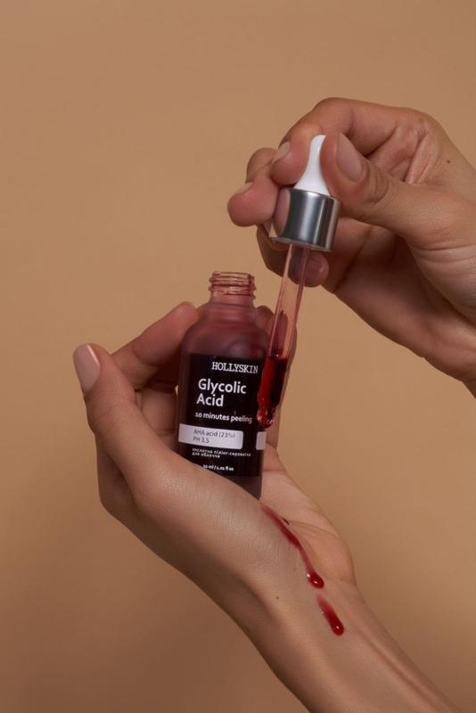 ❤️Кислотный пилинг для лица HOLLYSKIN Glycolic Acid "Кровавый пилинг"🩸30мл Кислотная пилинг-сыворотка мгновенно улучшает цвет и микрорельеф лица, позволяет коже сиять. Мягко отшелушивает отмершие клетки, увлажняет и освежает, уменьшает видимость возрастной и сезонной пигментации, устраняет постакне. При регулярном использовании уменьшает глубину возрастных и разглаживает мимические морщины, делает кожу гладкой и шелковистой. Гидролат розы и масло из семян моркови в составе предотвращают пересушивание кожи, восстанавливают упругость и естественный тонус, устраняют видимые проявления усталости. Способ применения: нанесите небольшое количество пилинг-сыворотки на очищенную и сухую кожу лица во время вечернего ухода. Оставьте на 7-10 минут, затем тщательно смойте пилинг едва теплой водой. Внимание! В первый день максимальное время использования 5 мин. При чувствительной коже может быть незначительное пощипывание, жжение и легкое покраснение (получайте области вокруг глаз, губ, крыльев носа и слизистых оболочек). После использования средства нанесите успокаивающий крем. Применяйте пилинг-сыворотку 1-2 раза в неделю с дополнительным использованием солнцезащитного крема. Предостережение: перед использованием рекомендуем протестировать средство на небольшом участке кожи. Не наносите на поврежденную кожу! Избегайте попадания в глаза! ВНИМАНИЕ! Не наносите продукт на влажной коже. Полка применения средства используйте солнцезащитный крем с высоким фильтром SPF 30 и выше, и, по возможности, уменьшите время пребывания на солнце. Если возникает значительное раздражение, прекратите использование и обратитесь к врачу. Храните в недоступном для детей месте.