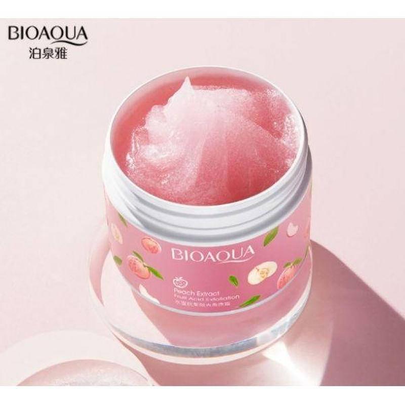 Пілінг-скатка для особи Bioaqua Peach спрямований на глибоке і одночасно з цим делікатне очищення пір, відлущування ороговілих частинок шкіри. Засіб робить шкіру пружною і еластичною, колір шкіри рівним, однорідним, яскравим і здоровим. Допомагає освітлити небажані пігментні плями і ластовиння, глибоко і ефективно очищає пори і значно зменшує кількість чорних крапок.