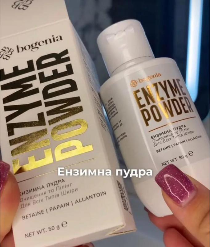 Ензимна пудра, розроблена на основі натурального ферменту (ензиму) - папаїну глибоко очищає й розгладжує шкіру, відлущує ороговілі клітини, стимулює процес відновлення та регенерації, освітлює шкіру та робить її сяючою. Підходить для щоденного очищення для всіх типів шкіри. Спосіб застосування: насипте порошок на долоню, додайте теплу воду й змішайте до утворення піни. Нанесіть на обличчя й зробіть легкий масаж круговими рухами. Змийте великою кількістю води. Уникайте зони навколо очей. 50 г