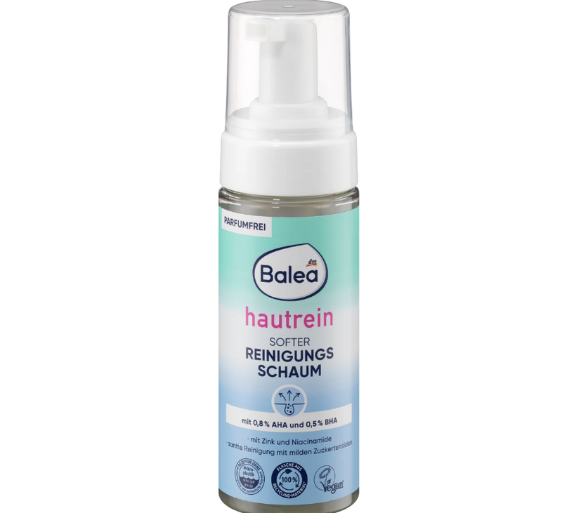 С AHA, BHA, ниацинамидом и цинком Предотвращает загрязнения Тщательная очистка и отшелушивание С мягкими поверхностно-активными веществами на основе сахара Без запаха Очищающая пенка Balea Hautrein нежно очищает и отшелушивает кожу. Эффективная комбинация AHA (молочной кислоты) и BHA (салициловой кислоты) мягко удаляет отмершие клетки кожи и делает кожу более сияющей. Формула с цинком и активным активным ингредиентом ниацинамидом может регулировать содержание жира в коже и сделать цвет лица более равномерным. Известно, что активный ингредиент аллантоина успокаивает кожу и завершает формулу. Рецепт без микропластика и водорастворимых чисто синтетических полимеров. AQUA, COCO-GLUCOSIDE, GLYCERIN, DECYL GLUCOSIDE, LACTIC ACID, NIACINAMIDE, SALICYLIC ACID, SODIUM BENZOATE, ALLANTOIN, GLYCERYL OLEATE, ZINC PCA, SODIUM HYDROXIDE, POTASSIUM SORBATE, LYCERIDES CITRATE, LECITHIN, ASCORBYL PALMITATE