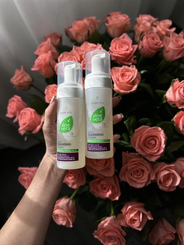 Легка очищаюча пінка для нормальної, жирної та комбінованої шкіри • 50% алое вера та екстракт шипшини • Ніжно очищає шкіру, видаляє макіяж і забруднення • Відновлює та не пересушує шкіру