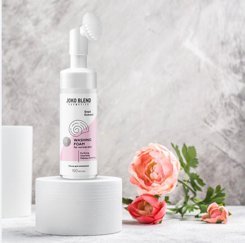 Особливості Joko Blend Washing Foam: - усуває надлишки себуму, залишки макіяжу, часточки пилу та бруду; - підтримує оптимальний гідробаланс шкірного покриву; - містить равликовий муцин, що пом’якшує, живить, відновлює і розгладжує; - лавандовий гідролат стимулює клітинну регенерацію, запобігає появі висипань і заспокоює подразнення; - мигдальна олія вирівнює поверхню шкіри, поліпшує її колір, робить пружнішою і шовковисто гладенькою.