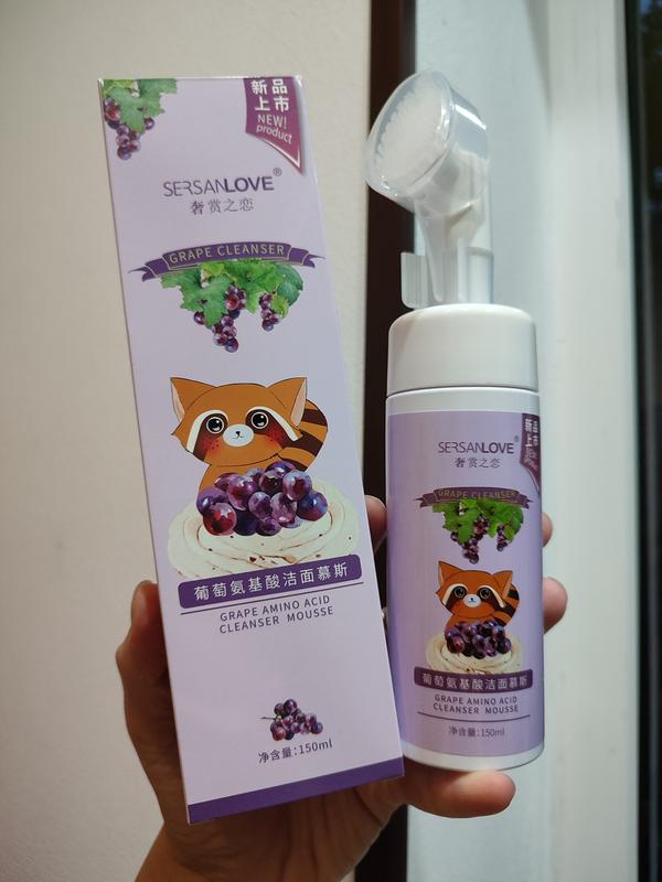 Пінка-мус для вмивання та екстрактом винограду Sersanlove Grape Amino Acid Cleanser Mousse. Основні компоненти догляду: - Екстракт винограду містить багато корисного, а саме: вітаміни C, В1, В2, В6, В12, Р, РР. Очищає, освіжає, нормалізує виділення себуму, забезпечує детокс-ефект. - Антиоксиданти борються з вільними радикалами, які називають головним ворогом клітин шкіри. - Мінерали та мікроелементи необхідні для підтримання здорової шкіри. - Гіалуронова кислота корисна тим, що насичує вологою, зв'язуючи та утримуючи воду, підвищує пружність, відновлює роботу сальних залоз, сприяє регенерації клітин, що забезпечує омолоджуючий ефект. Пінка відмінно видаляє всі типи макіяжу, зайві олії та забруднення, закриває пори. Після вмивання шкіра стає дуже гладкою, підтягнутою та насиченою. Спосіб застосування: намочіть обличчя теплою водою, видавіть пінку-мус, потім щіточкою круговими рухами масажуйте всю поверхню обличчя протягом 2-3 хвилин. Змийте теплою водою до повного зникнення пінки-мусу. Після закінчення помийте щіточку для подальшого використання.