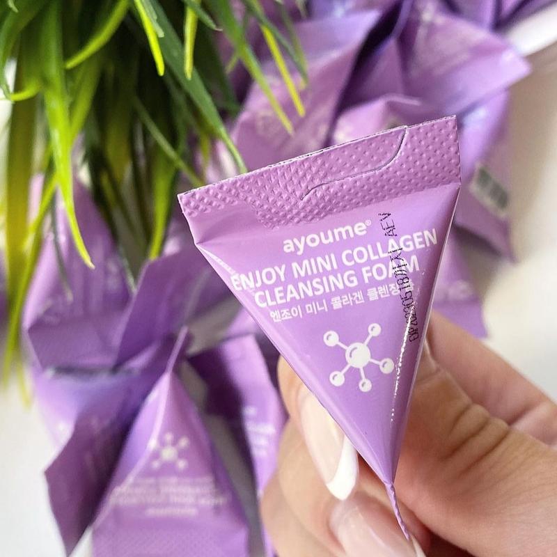 ЕЩЁ НЕ ПРОБОВАЛА УМЫВАТЬСЯ ПЕНКОЙ? ЭТО ТВОЙ ШАНС!😍⠀ ⠀ 💜ПЕНКА ДЛЯ УМЫВАНИЯ С КОЛЛАГЕНОМ В ПИРАМИДКЕ AYOUME ENJOY MINI COLLAGEN CLEANSING FOAM⠀ ⠀ 💜Нежная пенка для умывания на основе коллагена тщательно очищает поры кожи от любых загрязнений, не нарушая естественный баланс кожи⠀ ⠀ 💜Природный коллаген увлажняет сухую кожу, восстанавливает эластичность, питает, способствует сохранению влаги в клетках кожи, предотвращает эффект стягивания после умывания⠀ ⠀ 💜Пенка делает кожу мягкой, гладкой и чистой. Пенка подходит для любого типа кожи⠀ ⠀ 💜Коллаген интенсивно наполняет кожу упругостью и не дает ей деформироваться⠀ ⠀ 💜Коллагеновые волокна поддерживают кожу изнутри, придают ей свежесть и гладкость, именно поэтому коллаген очень важен для сохранения молодости кожи⠀ ⠀ 💜Способен впитывать и держать влагу в подкожной прослойке, что обеспечивает ей постоянную увлажненность, и это в свою очередь, является одним из важнейших факторов, влияющих на отсутствие морщин⠀ ⠀ 👌🏼Способ применения: вспенить средство на руке или при помощи сеточки, нанести на кожу лица и слегка помассировать, затем смыть теплой водой⠀ ⠀ 🌱3г⠀