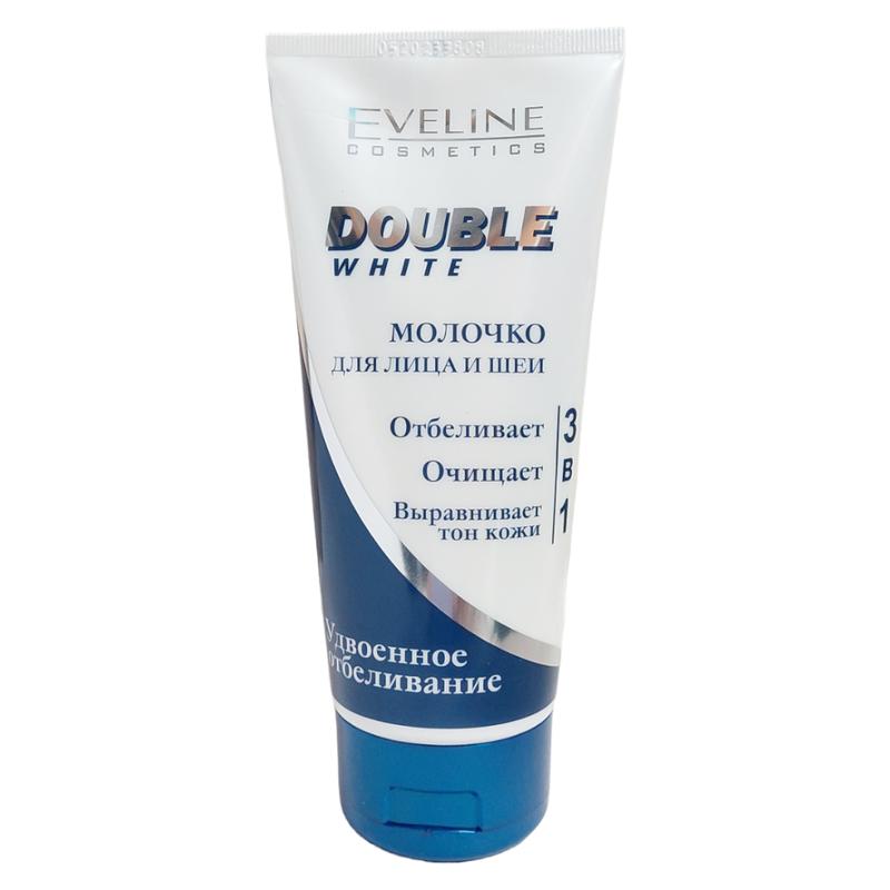 Молочко для снятия макияжа 200 мл. отбеливающее 3в1 Eveline Double white Эвелин Молочко для лица и шеи 3 в 1 "Удвоенное Отбеливание" Eveline Cosmetics Double White - нежный косметический препарат, который прекрасно устраняет водостойкий макияж, не нарушает натурального рН баланса и сохраняет гидролипидный слой кожного покрова. Состав средства обогащен молочной кислотой, лактатом аммония, экстрактами лимона и петрушки, которые эффективно регулируют и сдерживают выработку меланина, стимулируя его равномерное распределение в коже и предупреждая появление новых пигментных изменений. Препарат способствуют радикальному восстановлению и отшелушиванию отмерших клеток, избавляет от более пигментированных, придавая эпидермису прекрасный оттенок и прозрачность. Молочко снимает ощущение усталости и напряжение, замечательно увлажняет, освежает и смягчает кожу.