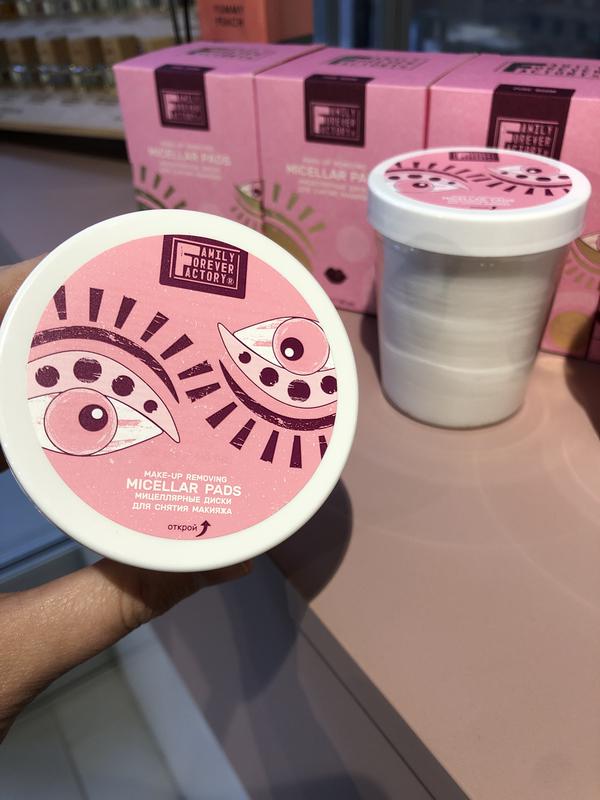 Міцелярні диски ефективно видаляють макіяж. Склад не сушить шкіру та не подразнює слизову оболонку очей.