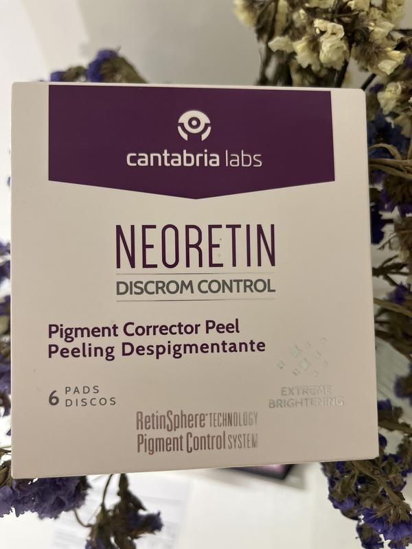 Ціна за 1 шт -300 грн 2 шт -550 грн Cantabria Neoretin Discrom Control Pigment Peel Pads Пілінг в дисках Пілінг для всіх типів шкіри сприяє інтенсивній ексфоліації та освітленню шкіри. Рекомендується як самостійний засіб або як додатковий засіб з метою посилення ефективності догляду. Активні інгредієнти: гліколева кислота, шикімова кислота, ніацинамід, 3-о-етил аскорбінової кислоти, лимонна кислота, саліцилова кислота, аргінін, гліцерин, ретинол, койєва кислота, глюкозид галової кислоти, трегалозатіаза, протеаза . Спосіб застосування: наносити ввечері на шкіру обличчя 1 раз на тиждень або дотримуючись рекомендацій фахівця. Делікатно масажувати шкіру круговими рухами протягом 1 хвилини, сприяючи видаленню мертвих клітин та покращенню проникнення основних активних інгредієнтів. Залишити для дії на ніч. Змити наступного ранку теплою водою.