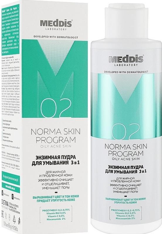 Энзимная пудра для умывания 3 в 1 meddis norma skin program для жирной и проблемной кожи 8...