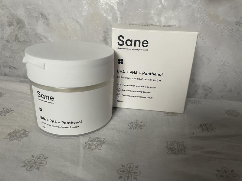 Пілінг-педи Sane для проблемної шкіри BHA+PHA+Panthenol Використала декілька штук Приблизно 10 розрізані навпіл Ціна: 240