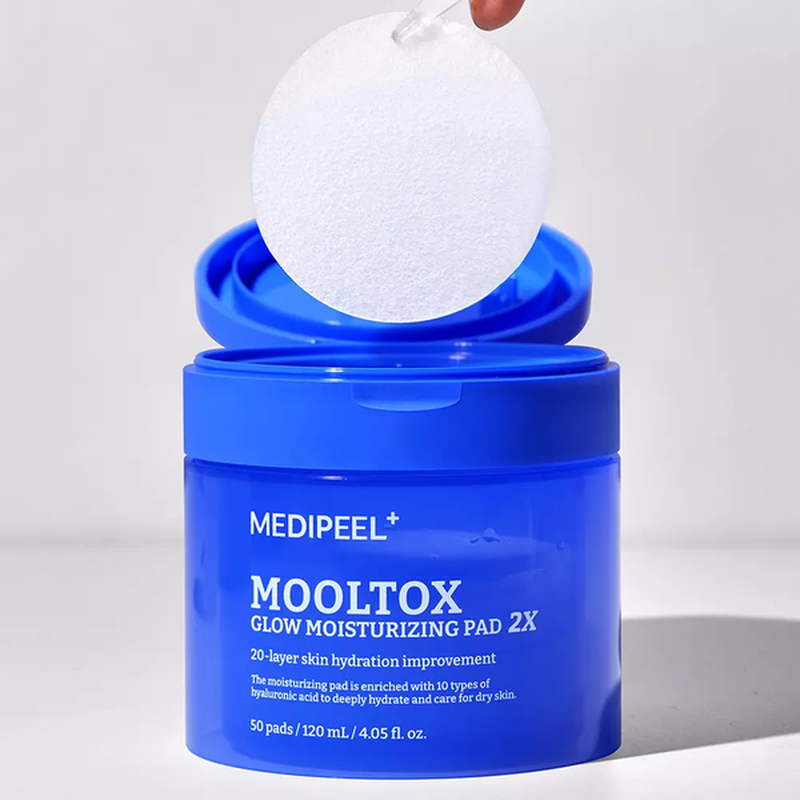 Пилинг-педы MEDIPEEL Mooltox Glow Moisturizing Pad 2X глубокого увлажнения и восстановления здорового сияния кожи. Благодаря сочетанию 10 видов гиалуроновой кислоты и технологии AQUAXYL™, эти пэды дарят вашей коже комфорт, гладкость и идеальную подготовку под макияж с первого применения. Какие проблемы решает: 🔹Сухость и обезвоженность кожи 🔹Тусклый цвет лица 🔹Первые возрастные изменения и мелкие морщины 🔹Шероховатость и неровная текстура кожи 🔹Быстрая потеря влаги в течение дня 🔹Раздражения и чувствительность 🔹Усталость и тусклость после стрессов или агрессивного уход В составе: 10 видов гиалуроновой кислоты — молекулы разного размера проникают в глубокие и поверхностные слои кожи, обеспечивая многоуровневое увлажнение и создавая барьер от потери влаги. AQUAXYL™ — инновационный комплекс, восстанавливающий гидробаланс кожи и предотвращающий обезвоживание. Веганская трёхслойная ткань — ультрамягкая и безопасная для кожи, обеспечивает плотный, но комфортный контакт без раздражений. Пептиды и коллаген (трипептиды, гексапептиды, пальмитоилпептиды) — стимулируют выработку собственного коллагена, возвращают коже упругость и плотность. Гидролизованный коллаген и ателоколлаген — питают, повышают эластичность и дарят ощущение шелковистой кожи. Глицерин и растительные увлажнители — мгновенно смягчают и удерживают влагу, сохраняя кожу насыщенной и комфортной. Эссенция имеет лёгкую гелевую текстуру, быстро впитывается и не оставляет липкости. Аромат — нежный, едва уловимый, с нотками свежести. Подходит для: Сухой, обезвоженной и тусклой кожи Кожи с первыми признаками старения Чувствительной кожи, склонной к раздражениям Любого возраста — для экспресс-увлажнения и подготовки кожи к макияжу Способ применения: ▪️После очищения лица протрите кожу пэдом, избегая зоны вокруг глаз и губ. ▪️Для интенсивного ухода за порами оставьте пэд на Т-зоне или проблемных участках на 3–5 минут. ▪️Смывать не нужно — активные компоненты впитаются, обеспечив увлажнение и уход. 50 шт/120 мл