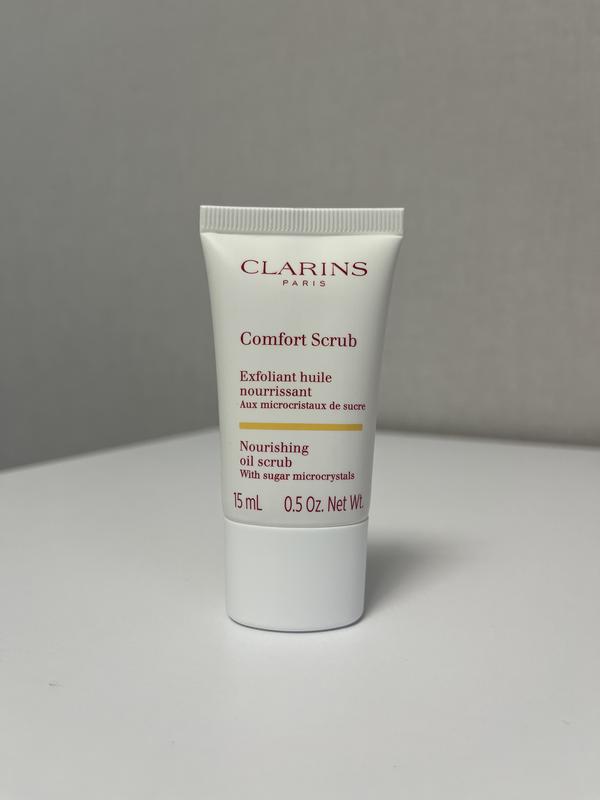 Скраб для обличчя від Clarins Засіб, виготовлений за формулою, що містить олію дикого манго, залишає на шкірі винятково приємні та ніжні відчуття, оскільки м'яко на неї впливає, додає шовковистості й активує процеси загального перетворення. Особливості Clarins Comfort Scrub: - олійно-гелева консистенція середньої густини; - містить цукрові мікрокристали, за допомогою яких забезпечує делікатну відлущувальну дію; - дбайливо видаляє забруднення й ороговілі часточки, розгладжуючи і пом'якшуючи шкіру; - дарує відчуття комфорту; - підкорює дивовижним солодким ароматом; - містить компоненти, що мають захисні, зволожувальні і відновлювальні властивості; - надає обличчю сяйва. Батч код: 0508204 Обʼєм: 15 мл.