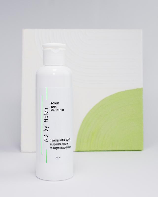 Тоник для лица с АНА-кислотами, гиалуроновой кислотой и минеральным комплексом от NB by Helen оказывает мягкое отшелушивающее действие на физиологическом уровне. Идеально подойдет к Вашему ежедневному уходу. Натуральные фруктовые кислоты обеспечивают устранение мелких чешуек из кератина. Кислоты также увлажняют и удерживают влагу в коже долгое время, повышают иммунную защиту, обновляют клетки кожи, делая ее мягкой, бархатистой и упругой. Минеральный комплекс способствует клеточному обновлению, оказывает омолаживающее действие: тормозит процессы старения кожи, останавливает образование морщин и придает коже упругость. Также в составе присутствуют мощные увлажнители: Гиалуроновая кислота низкомолекулярная (способна проникать до глубоких слоев кожи), НЗФ (натуральный увлажняющий фактор) и Фукогель (натуральный полисахарид). Подходит к любому типу кожи. При использовании летом, перед выходом на активное солнце, нанести спф крем. *перед использованием рекомендовано провести тест на индивидуальную реакцию (нанести небольшое количество продукта на сухую кожу внутренней части предплечья, в течение 24 часов не должно быть покраснения, зуда, ощущения жжения).
