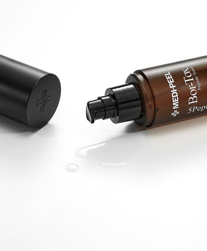 Тонер антивіковий з валюфіліном Medi-Peel Bor-Tox 5 Peptide Toner 180 мл Тонер з ефектом ботоксу Medi-Peel Bor-Tox 5 Peptide Toner для інтенсивного і максимального омолодження зрілої, в’ялої, зморшкуватої шкіри обличчя. Формула із вмістом комплексу пептидів та валюфіліну ефективно діє проти вікових змін та ознак старіння. ✔️Засіб забезпечує глибоке зволоження, надійно захищає від сухості, лущення, зневоднення клітин. ✔️Нормалізує водний баланс у внутрішніх шарах епітеліальної тканини. ✔️Надає шкірі здорового сяйва, шовковистості та м’якості. ✔️Протистоїть утворенню загрубілих ділянок, пігментних плям. ✔️Повертає обличчю яскравість і рівномірність тону, робить його доглянутим та оновленим. ✔️Активно стимулює процес регенерації клітин, нормалізує водно-ліпідний баланс, глибоко очищає пори від забруднень, залишків косметики, сальних пробок. ✔️Надає виражену ліфтинг-дію, підтягує та зміцнює шкіру. Основні діючі інгредієнти: ✨Волюфілін – унікальний актив, що отримується з кореня анемаррени. Активно стимулює локальне накопичення жирової тканини, підвищуючи щільність та пружність шкіри, усуваючи провисання та розгладжуючи зморшки. ✨Гіалуронова кислота проникає глибоко в епідерміс і покликана усунути дегідратацію шкіри, заповнити нестачу вологи, усунути сухість та захищати від старіння шкіри. ✨Комплекс із 5-ти видів пептидів відповідає за постійну регенерацію та оновлення клітин, надає глибокий anti-age вплив, скорочує видимість зморшок та перешкоджає утворенню нових, стимулює процеси оновлення та регенерації, уповільнює старіння клітин. Нормалізує вироблення колагену та еластину, розгладжує шкіру, вирівнює рельєф. ✨Кераміди підвищують захисні функції епідермісу, запобігають втраті вологи та допомагають відновити шкіру. ✨Гідролізований колаген відновлює структуру епідермісу зсередини, зміцнює стінки клітин, покращує білковий обмін. Підтримує матрикс шкіри, розгладжує зморшки та заломи. ✨Пробіотики підтримують нормальну мікрофлору шкіри, а також сприяють освітленню пігментації та вирівнюють тон шкіри. Зволожують, усувають почервоніння, регулює вироблення меланіну в епідермісі, м’яко відлущують ороговілий шар і прискорюють процеси регенерації. Зміцнюють захисний шар шкіри