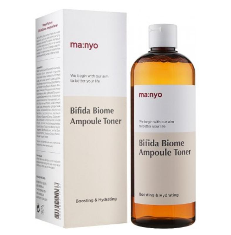 Тонер для захисту і відновлення біома шкіри Manyo Bifida Biome Ampoule Toner 400 ml Унікальний у своєму роді зміцнювальний і омолоджувальний тонер з біфідобактеріями відновлює мікробіом шкіри, підвищує її захисні функції і гармонізує pH-баланс. Він зменшує вираженість зморшок, скорочує їхню кількість, підвищує еластичність і щільність шкіри. Також тонер заспокоює шкіру, прискорює її загоєння, знімає почервоніння, подразнення і дискомфорт. Цей засіб чудово зміцнить, відновить вашу шкіру і підготує її до подальших етапів догляду. Мікробіом - це перший крок до захисту шкіри від зовнішнього світу та оздоровлення, а першим кроком на шляху до здорової шкіри є збалансований мікробіом. Комбінуйте комплекс Bifida Biome і пробіотики для створення міцнішого шкірного бар'єру. Він захистить і вирівняє основу, роблячи вашу шкіру здоровою і сяючою. Містить 5 видів гіалуронової кислоти: 1 шар - Sodium Hyaluronate 2 шар - Hydrolyzed Hyaluronic Acid 3 шар - Glycosaminoglycans 4 шар - Sodium Hyaluronate Crosspolymer 5 шар - Hyaluronic Acid Це не тонер, який просто натирається зовні і швидко випаровується, але він поглинає вологу між сухими шкірними щілинами різного молекулярного розміру, тим самим полегшуючи шкірну спрагу і зміцнюючи бар'єр вологи. Властивості: Уповільнює процеси старіння; Підвищує тургор; Покращує захисні функції; Відновлює гідроліпідний бар'єр; Розгладжує мікрорельєф; Покращує колір обличчя. Текстура: Легкий фініш без липкості, шкіра залишається зволоженою, але свіжою. Активні інгредієнти: Фермент лактобактерій - сприяє зволоженню, м'яко відлущує і прискорює процеси регенерації. Освітлює шкіру й усуває почервоніння. Кераміди або цераміди - це необхідні "корисні" жири, які є основою ліпідного шару шкіри. Дефіцит керамідів призводить до зневоднення, сухості, подразнення і запалення шкіри. Лізат біфідобактерій - допомагають посилити ослаблений захисний бар'єр шкіри і захистити її від шкідливого впливу зовнішнього середовища. Спосіб застосування Нанесіть необхідну кількість засобу на чисту шкіру, після вмивання.