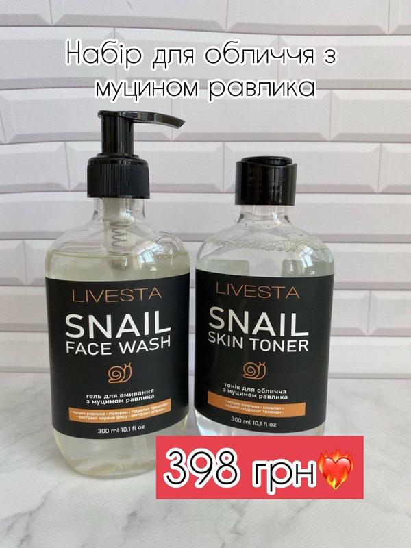 🐌Набор для лица с муцином улитки Livesta 🐌 ❤️🔥гель и тоник для нежного ухода за кожей. Гель очищает, увлажняет и восстанавливает, а тоник тонизирует и улучшает структуру кожи. 👌Высокоэффективный комплекс для сияющей, здоровой и молодой кожи каждый день! ✔️Подходит с 20 лет Гель 300 мл Тонік 300 мл Для заказа пишите ✍️📩