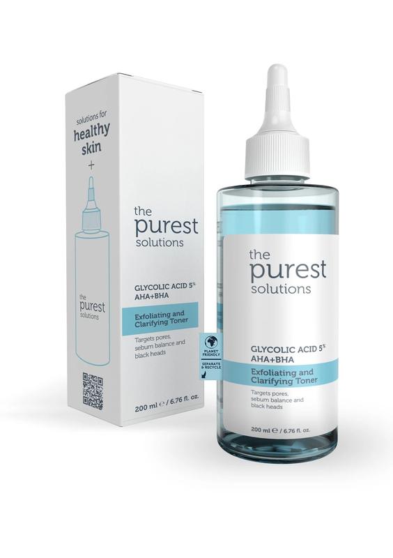 онер Purest Solutions с гликолевой кислотой** — ваш ключ к чистой, гладкой и обновленной коже. Это средство мягко удаляет отмершие клетки, излишки жира, загрязнения и остатки макияжа. Он сужает поры, нормализует выработку кожного сала и дарит здоровый, сияющий вид. **чему стоит выбрать этот тонер?* - ** Уменьшение пор:** Эффективно очищает и сужает поры, предотвращая их загрязнение. - **Балансировка жирности:** Регулирует выделение кожного сала, обеспечивая коже оптимальный уровень увлажнения. - **Обновение кожи:** Помогает бороться с первыми признаками старения, делает кожу свежей, упругой и ухоженной. **Секрет эффективности — в составе:** **AHA кислоты (гликолевая, лимонная, молочная, яблочная, глюконовая, винная):* Деликатно отшелушивают, стимулируют обновление клеток, разглаживают кожу и выравнивают тон. - **Гликолевая кислота:** Проникает в глубокие слои кожи, улучшает текстуру и увлажнение, делая лицо ухоженным и сияющим. **Инулин и фруктоза:** Пребиотики, которые поддерживают здоровую микробиоту кожи, укрепляют ее барьерные функции и повышают эластичность. **Для кого создан этот продукт?** - Для тех, кто хочет сузить поры и предотвратить их загрязнение. - Для кожи, которая нуждается в контроле жирности и свежем виде. - Для борьбы с первыми признаками старения - тонер дарит коже молодость и сияние. **Важные предупреждения:** Не рекомендуется для чувствительной кожи из-за низкого уровня pH. ** Добавьте этот тонер к своей бьюти-рутине - и результат не заставит себя ждать!*