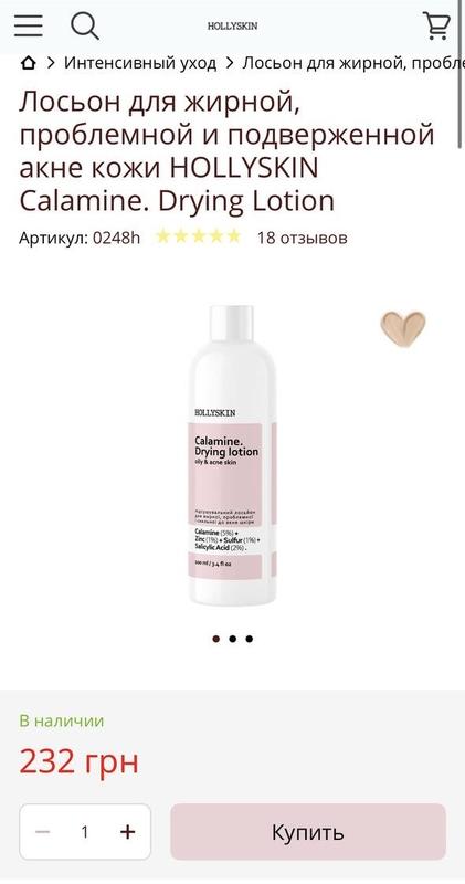 Підсушувальний лосьйон для схильної до акне шкіри hollyskin calamine lotion