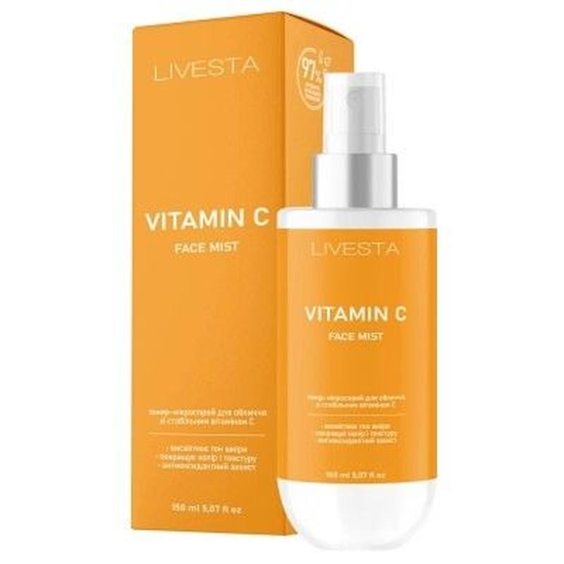 Тонер-микроспрей со стабильным витамином C LIVESTA, 150 мл Освежает. Выравнивает Наполняет сиянием. Осветляющий тонер для лица LIVESTA с стабильной формой витамина С - это идеальный старт для ежедневного ухода. Он мягко пробуждает кожу, увлажняет, выравнивает тон и текстуру, дарит естественное сияние. Мощная комбинация антиоксидантов, кислот и натуральных экстрактов устраняет тусклость, пигментацию и помогает коже оставаться гладкой, упругой и свежей. Глицерин, гликолевая кислота и бетаин усиливают увлажнение, экстракты цитрусовых тонизируют, а пептид миорелаксант уменьшает мимические морщины. Формула не содержит вредных веществ и подходит для ежедневного использования.