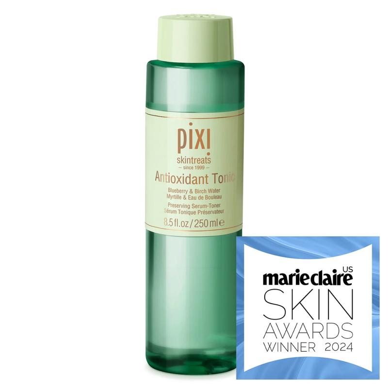 250 мл Сухість і тьмяність — два ворога шкіри, що заважають їй мати свіжий вигляд. На щастя, майстри бренда Pixi пропонують чудове та повністю безпечне рішення — антиоксидантний тонік для обличчя. Його формула не містить спирту, тому не варто переживати про можливі подразнення, а скандинавська суміш супер-ягід подарує вам здорове та привабливе сяйво. Натуральні екстракти захищають шкіру від щоденних забруднень і окисного стресу, запобігаючи передчасному старінню. Водночас засіб приємно освіжає, зволожує й заспокоює шкіру, позаяк додатково зміцнює її природний бар'єр і запобігає втраті вологи. Особливості Pixi Skintreats Antioxidant Tonic: – поєднує в собі властивості тонера, есенції та сироватки; – березова вода забезпечує глибоке живлення та зволоження; — екстракти полуниці, морошки, брусниці, малини, чорниці та журавлини надають потужний антиоксидантний захист, сповільнюючи процес старіння; — екстракт квітки маріопоса захищає епідерміс від забруднень і синього світла, покращує колір обличчя; — ніацинамід додає шкірі сяйва, вирівнює тон, а разом із керамідами покращує бар'єрні функції; — гіалуронова кислота підтримує шкіру гладкою й еластичною; – приємно освіжає, усуває відчуття стягнення; — продукт не тестується на тваринах; — не містить спирту та парабенів