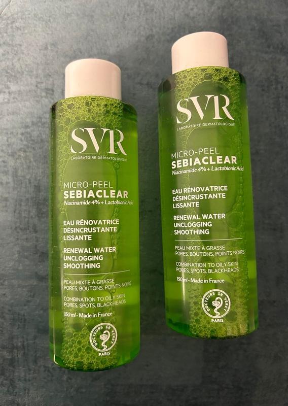 SVR Sebiaclear Micro-Peel – легкий микропилинг для ежедневного ухода. - Ниацинамид уменьшает воспаление, следы от акне и регулирует себум - Лактобионовая кислота мягко отшелушивает и обновляет клетки - Очищает и сужает поры, уменьшает черные точки и несовершенства - Выравнивает текстуру и делает кожу гладкой - Подходит для комбинированной и жирной кожи, даже чувствительной