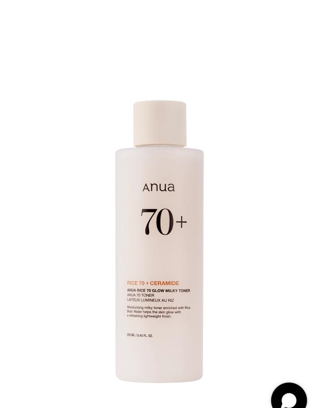 Anua - Rice 70 Glow Milky Toner - освітлювальний і зволожувальний тонік з легкою молочною текстурою, що не залишає неприємного відчуття липкості. Гарантує ефект "скляної" шкіри. Містить гідролат рису та екстракт рису, які забезпечують шкіру необхідними вітамінами та мінералами, зволожують, регенерують та освітлюють. Доповнює їхню дію ніацинамід, який надає протизапальну дію та зменшує пігментацію. Водночас пантенол заспокоює подразнення і зменшує запалення, гіалуронова кислота зволожує, зв'язує воду в епідермісі і підтягує, а цераміди живлять і дбають про гідроліпідний бар'єр. Формула продукту без запаху й упакована у зручну пляшку, що гарантує комфортне використання. Активні компоненти: гідролат рису - на основі рисових висівок, має антиоксидантні та протизапальні властивості, містить вітаміни та мінерали групи В і Е, зволожує, регенерує та надає пружності, екстракт рису - покращує текстуру шкіри, живить і зволожує, ніацинамід - вітамін В3, регулює секрецію шкірного сала, зменшує жирність, знімає запалення та освітлює пігментацію, пантенол - провітамін В5, заспокоює і знімає подразнення, сприяє загоєнню мікротравм, цераміди - підтримують захисний бар'єр шкіри, регенерують та запобігають випаровуванню води, гіалуронова кислота - зволожує, зв'язує воду в епідермісі, підтягує в'ялу шкіру. Дія засобу: зволожує і живить, освітлює, регенерує, заспокоює подразнення, підтримує захисні функції шкіри, відновлює пошкоджений гідроліпідний бар'єр. Виробник рекомендує засіб для таких типів шкіри та косметичних дефектів: усі типи шкіри.