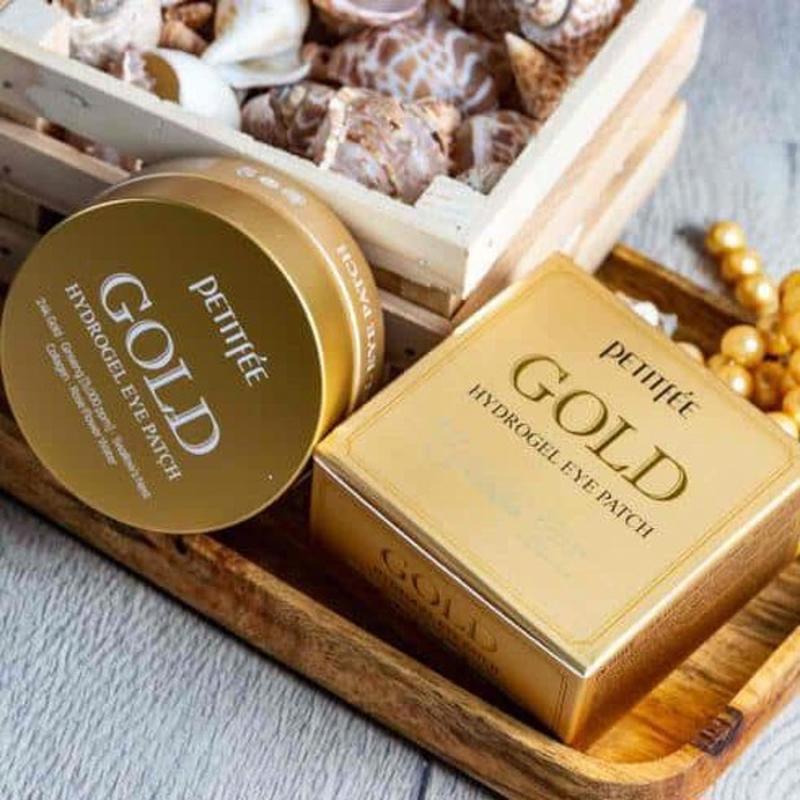 PETITFEE Gold Hydrogel Eye Patch Гидрогелевые патчи для глаз с золотым комплексом +5 Высокоэффективные гидрогелевые патчи для глаз, разработанные для чувствительной кожи, мгновенно улучшающие ее состояние и препятствующие появлению морщин. Патчи обладают осветляющим действием, помогут убрать следы недосыпания, сделать кожу мягкой, увлажненной и эластичной. Основные ингредиенты данных патчей PETITFEE Gold Hydrogel Eye Patch – улиточный муцин и коллоидное золото. Улиточный муцин в их составе усиливает регенерацию кожи, помогает ее увлажнить, оказывает ранозаживляющее действие, а коллоидное золото улучшает обменные процессы в кожу. Аллантоин, коллаген и эластин помогают коже выглядеть значительно лучше, а также препятствуют появлению морщин. Для удобства использования патчей в комплект входит специальная удобная лопаточка. Гидрогелевые патчи с золотым комплексом – настоящее спасение от темных кругов под глазами, отечности и мелких мимических морщин. Благодаря полному прилеганию патча, действующие вещества мгновенно проникают в кожу и оказывают немедленный освежающий, омолаживающий и регенерирующий эффекты. Идеально подобранный золотой комплекс +5 лучших компонентов 24-х каратне золото корень женьшеня колаген экстракт птичьего гнезда цветочная вода болгарской розы. Золото подтягивает кожу, делает ее упругой, повышает эластичность, разглаживает морщины. Его свойства освежают кожу, вместе с тем придавая лицу благородный фарфоровый оттенок и отдыхающий вид. Рожева вода отлично очищает, устраняет покраснения, воспаления и шелушения, увлажняет и одновременно убирает жирный блеск. Кроме того, она сужает поры и нормализует работу сальных желез. Розовая вода является отличным антиоксидантом для кожи. Женьшень способствует быстрой регенерации клеток и выработке естественного коллагена, помогает избавиться от морщин и регулирует процессы обмена. Экстракт ласточкиного гнезда – источник важных минералов, полисахаридов, регуляторных молекул (цитокинов) и антиоксидантов. В восточной медицине этот экстракт признан лучшим косметическим средством с омолаживающим потрясающим эффектом. А также защита от свободных радикалов восстанавливает защитный барьер кожи. Колаген - важнейший белок нашего организма, благодаря которому обеспечивается эластичность и упругость кожи, а также увеличивается синтез самого коллагена в организме.