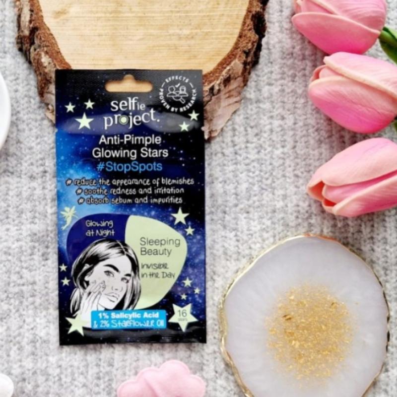 Selfie Project - патчи от черных точек и прыщей на лице, #StopSpots, Anti-Pimple Stars, масло чайного дерева и масло календулы. Звезды должны светиться в темноте, держать при дневном свете перед использованием как написано на упаковке, чтобы они светились. Они имеют форму звезды, идеально подходят для того, чтобы наклеить их на прыщ. Патчи нужно держать 6 часов, можно на ночь.В упаковке 16 штук. Срок годности до 05.2026