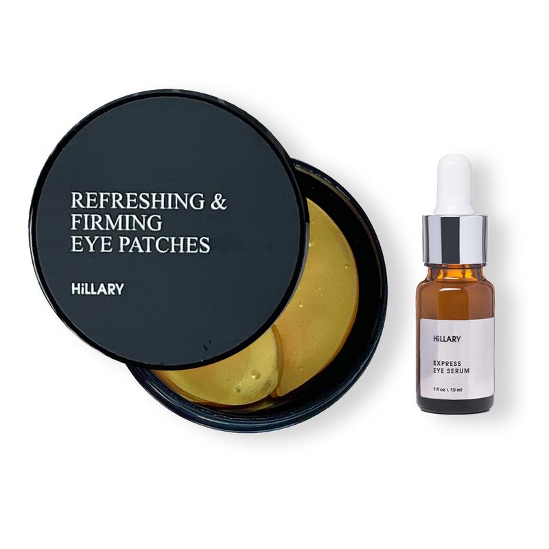 Набор для ухода за кожей вокруг глаз, состоит из освежающих укрепляющих патчей с витамином С и експрес сироватка навколо очей. Благодаря освежающим гидрогелевым патчам отеченные глаза мгновенно становятся отдохнувшими и сияющими. Продукт, збагачений витамином С и ретинолом, заметно освещает темные круги под глазами. Екстракт петрушки оказывает мягкое противоотечное действие и эффективно уменьшает пигментацию. Экстракт коры шелковицы укрепляет стенки капилляров и стимулирует синтез коллагена. Гиалуроновая кислота и колаген уменьшают проявления мимических и “солных” морщин, делая кожу гладкой и упругой. Подходят для всех типов кожи. Современная инновационная формула и высокоэффективные компоненты Експрес сироватки навколо очей Hillary Express Eye Serum помогут быстро избавиться от темных кругов, мешков, под глазами и морщин. Эта сыворотка активно увлажняет и защищает тонкую, чувствительную кожу вокруг глаз, ухаживает за ней в течение дня или ночи. В состав сыворотки входят уникальные пептиды, обладающие тонизирующими и регенерирующими свойствами. Експрес сироватка навколо очей Hillary Express Eye Serum - устранит следы усталости и покраснения, поддержит оптимальный гидробаланс эпидермиса, будет предотвращать появление морщин и повысит упругость кожи. В набор входят: - Освежающие укрепляющие патчи с витамином С Hillary Vitamin C Refreshing & Firming Eye Patches, 60 шт; - Експрес сироватка навколо очей Hillary Express Eye Serum, 10 г. Способ применения: 1. Нанесите гидрогелевые патчи на чистую сухую кожу под глазами на 15-20 минут утром, вечером или при необходимости. Можно также наносить на носогубные складки, лоб или шею. 2. Выбросьте патчи после использования и нанесите сироватку Express, равномерно распределите в зоне вокруг глаз.