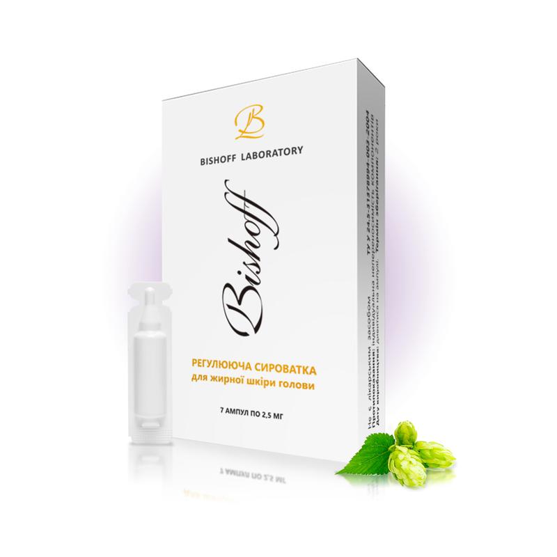 Жирна шкіра голови може негативно впливати на здоров'я волосся, роблячи його слабким і тьмяним. Bishoff Laboratory розробила професійний регулюючий засіб - активну сироватку, що дозволяє досягти контролю над рівнем жирності шкіри голови і відновити її баланс. Концентрована сироватка насичена комплексом ретельно підібраних рослинних екстрактів, які глибоко проникають в шкіру голови, знімають запалення фолікулів волосся та контролюють роботу сальних залоз. Завдяки насиченій формулі волосся отримує безліч вітамінів та мікромінералів: калій, кальцій, марганець, йод та інші. Активний комплекс - полімінерал бішофіт в поєднанні з гідролізатом соку гриба шіїтаке - підвищує швидкість і ступінь проникнення активних компонентів в шкіру. При постійному застосуванні засобу робота сальних залоз нормалізується, зникають ознаки жирної шкіри голови, а волосся стає більш об'ємним і повним життя. Спосіб застосування: Помити голову шампунем Bishoff з використанням бальзам-ополіскувача Bishoff. Підсушити волосся рушником. Підготувати шкіру до нанесення активної сироватки масажем шкіри голови на 2-3 хвилини. Відкрити капсулу. Роблячи проділи на волоссі, рівномірно нанести в невеликій кількості сироватку на шкіру голови вздовж проділів. Кінчиками пальців масажними рухами втерти сироватку в шкіру голови, масажувати 2-3 хвилини. Після чого можна укладати волосся як зазвичай. Не змивати не менш, ніж 12 годин. Процедуру проводити 1 раз на 2 дні або після кожного миття голови. Склад: Комплекс рослинних екстрактів: мати мачуха, крапива, подорожник, звіробій, пижма, шишки хмелю, насіння гірчиці, вода дистильована, PEG-7 гліцерил кокоат, активний комплекс (природний полімінерал бішофіт + полісахариди гриба шіїтаке), запашник, бензоат натрія.