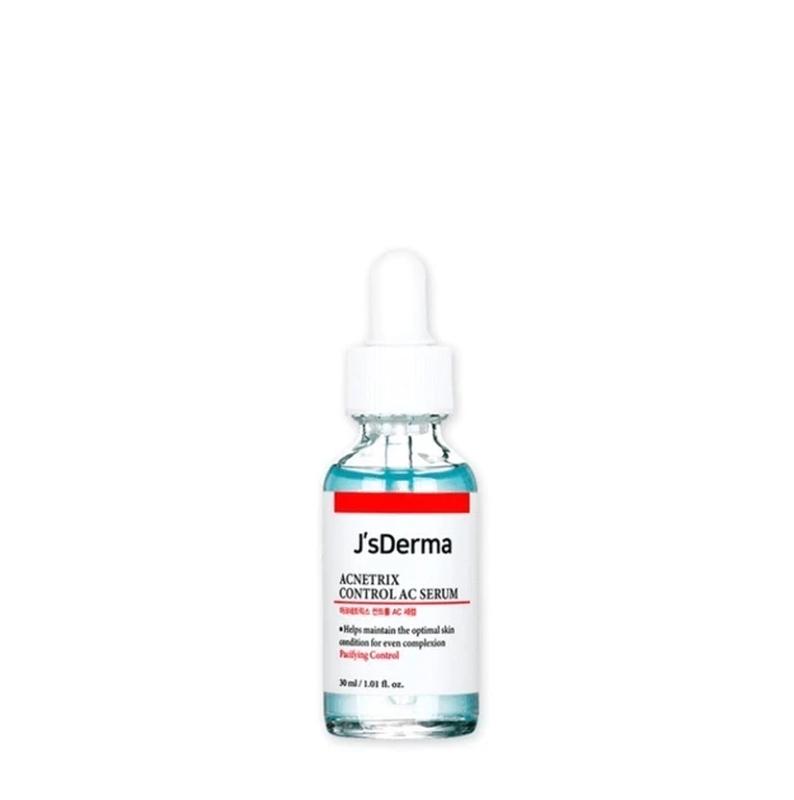 Сыворотка с высоким содержанием ниацинамида и цинка для проблемной кожи JS DERMA Acnetrix Control AC Serum: - Успокаивает и восстанавливает целостность кожного покрова после воспалений и высыпаний. - Помогает бороться с акне, предотвращает появление подкожников и комедонов. - Оказывает лимфодренажное действие и выравнивает микрорельеф поверхности кожи. - Регулирует гидролипидный баланс. - Предотвращает появление жирного блеска в течение длительного времени. - Осветляет пигментные, возрастные пятна и общий тон лица. - Успокаивает воспаления и раздражения, устраняет покраснения и зуд. В составе: - Ниацинамид 8% (витамин В3) - помогает бороться с акне, розацеа и пигментацией. Способствует ускорению метаболических процессов в клетках и регенерации эпидермиса, активно борется с первыми признаками старения и улучшает эластичность тканей. Осветляет пигментацию и шрамы, устраняет постакне и сужает поры, укрепляет защитные функции кожи. - Цинк (1%) - регулирует процесс выработки себума, устраняет его избыток и матирует кожу, активно борется с микробами, успокаивает воспаления и прыщики. Ускоряет процессы заживления, и стимулирует восстановление целостности кожного покрова. - Бета-глюкан -- успокаивает раздражения и воспаления, способствует более быстрому процессу заживления, и запускает синтез эластина и коллагена. - Экстракт корня байкальского шлемника -- регулирует работу сальных желёз и выработку кожного сала, устраняет жирный блеск, препятствует появлению чёрных точек и снимает воспаление. - Экстракт центеллы азиатской -- оказывает противовоспалительное и ранозаживляющее действие, восстанавливает и укрепляет барьерные функции эпидермиса, способствует удержанию влаги. Укрепляет стенки капилляров и сосудов, борется с куперозом. - Пантенол - стимулирует восстановление целостности кожных покровов, снимает покраснения и раздражение, обладает ранозаживляющими свойствами. JS DERMA ACNETRIX CONTROL AC SERUM имеет легкую водянистую текстуру и буквально моментально впитывается кожей, чувства липкости и жирности полностью отсутствуют. Способ применения: Нанести небольшое количество сыворотки после тонера и равномерно распределить по всей поверхности лица. Дайте впитаться и нанести крем.