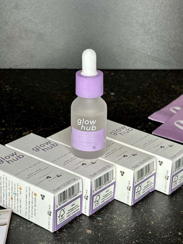 Обьем: 15 мл. Glow Hub. Purify & Brighten Super Serum Эффективная ультралегкая ежедневная сыворотка по уходу за жирной или проблемной кожей. Сыворотка дает комфортный детокс для кожи, уменьшает сыпь, выравнивает тон и рельеф, освещает пигментацию и следы постакнет. Средство содержит комплекс активных ингредиентов, которые не оставляют сомнений в его эффективности: салициловая кислота, экстракт белой ивы, экстракт комбучи и черники. Добавление салициловой кислоты и коры белой ивы делает сыворотку идеальной для того, чтобы мягко отшелушивать, очищать поры, уменьшать жирность и снизить вероятность появления прыщей. Салициловая кислота предназначена для общего лечения жирной и проблемной кожи, легко проникает внутрь пор через себум, очищает их стенки, устраняет черные йятки, дает легкий эффект эксфолиации. Экстракт коры ивы является уникальным природным компонентом, его вводят в состав косметических средств по уходу за проблемной, склонной к жирности кожей. Экстракт действует как бактерицидное средство, ускоряет регенерацию кожи, тонизирует, нормализует секрецию сальных желез. Сыворотка содержит уникальный компонент – комбучу – ферментированный экстракт черного чая и чайного гриба (Saccharomyces/Xylinum Black Tea Ferment). Этот компонент включает в себя целый комплекс кислот и Xylium – глюкуроновую кислоту, которая является эффективным детокс-компонентом, выводит токсины из клеток кожи. Действие комбучи: Нормализует работу клеток и выводит токсины. Восстанавливает волокна эластина и коллагена. Обеспечивает мягкий нежный пилинг. Благодаря высокой концентрации витаминов B успокаивает раздраженную кожу. Дает эффект лифтинга. Экстракт черники – самый богатый источник антоцианов, которые являются природными антиоксидантами, содержат витамины, микроэлементы и другие активные вещества, оказывает увлажняющее, тонизирующее и омолаживающее действие, улучшает микроциркуляцию крови и укрепляет стенки сосудов, помогает избавиться от отечности, антибактери. Сыворотка имеет легкую консистенцию, быстро поглощается кожей и делает ее сияющей и здоровой. Веганский продукт не тестировался на животных. Способ применения: Используйте каждый день. На чистую тонизированную кожу нанесите 3-4 капли перед кремом. Состав: AQUA (WATER), GLYCERIN, SACCHAROMYCES/ XYLINUM/ BLACK TEA FERMENT, SALIX ALBA (WILLOW) BARK EXTRACT, SALICYCLIC ACID, VACCINIUM MYRTILLUS (BLUEBERRY) FRUIT EXTRACT, POLYSORBATE 20, BENZYL ALCOHOL, CITRIC ACID, POTASSIUM HYDROXIDE, XANTHAN GUM, SODIUM GLUCONATE, BUTYLENE GLYCOL, PARUFM (FRAGRANCE), HYDROXYETHYLCELLULOSE, SORBIC ACID, PHENOXYETHANOL, SODIUM CITRATE, POTASSIUM SORBATE, CITRIC ACID, BIOTIN, CITRAL, HEXYL CINNAMAL, LIMONENE