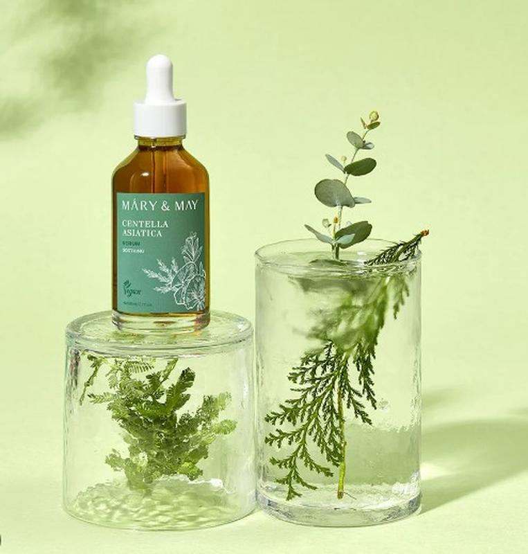 Mary&May Centella Asiatica Serum – пом'якшуюча сироватка з центеллою 95%: заспокоює почервоніння, запалення та подразнення; підходить для всіх типів шкіри, в тому числі для чутливої; зволожує; має мінімалістичний склад із всього 7 інгредієнтів; не тестується на тваринах. Ключовий інгредієнт: центелла азіатська 95% – зволожує, зменшує почервоніння, подразнення та запалення.