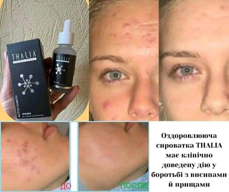 Сироватка для обличчя для проблемної шкіри з aha-bha та активованим вугіллям thalia livest...