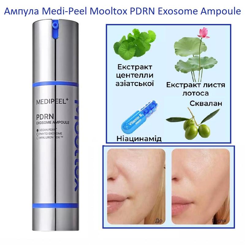 Ампула Medi-Peel Mooltox PDRN Exosome Ampoule – это идеальное решение для девушек, стремящихся вернуть коже упругость, сияние и здоровый вид. Уникальная формула с фитоэкзосомами и веганским PDRN из лотоса эффективно стимулирует регенерацию кожи, восстанавливая ее изнутри. Средство ускоряет регенерацию клеток, восстанавливает поврежденные участки и повышает плотность кожи, борется с признаками старения и восстанавливает естественный барьер кожи, делая ее упругой, сияющей и здоровой. 🌿 Благодаря нанотехнологиям, экзосомы размером 130 нм проникают глубоко в поры, доставляя активные компоненты прямо в клетки кожи для максимального эффекта. Основные компоненты: - Экзосомы роз – обогащенные антиоксидантами, укрепляют эластичность кожи и регулируют выделение кожного сала. Проникают в глубокие слои кожи, увлажняют и защищают от свободных радикалов. - PDRN из листьев лотоса – способствует регенерации клеток и улучшает упругость кожи. Обладает успокаивающим эффектом и ускоряет восстановление поврежденных участков. - Hyaluron Tox™ (10-слойная гиалуроновая кислота) – сочетание различных форм гиалуроновой кислоты (натрий гиалуронат, гидролизованная гиалуроновая кислота и ацетилированная гиалуроновая кислота) проникает в глубокие слои кожи и создает мощный увлажняющий барьер. - Веганский коллаген и полиглутаминовая кислота (PGA) – усиливают удержание влаги в коже, повышают ее упругость и гладкость. - Ниацинамид – мощный осветительный компонент, помогающий улучшить тон кожи, сократить пигментацию и устранить красноту. Способствует укреплению барьерной функции кожи и сужению пор. - Экстракт центели азиатской – известен своими успокаивающими и регенерирующими свойствами. Способствует быстрому заживлению, снимает воспаление и улучшает общее состояние кожи, особенно полезно для чувствительной и подверженной раздражению кожи. - Сквалан – натуральный увлажнитель, восстанавливающий липидный барьер кожи. Обладает антиоксидантными свойствами, защищает кожу от обезвоживания, сохраняя ее мягкой и эластичной. - Аденозин – известен своим антивозрастным эффектом. Уменьшает видимые морщины и тонкие линии, способствует обновлению клеток, делая кожу более гладкой и упругой. - Бета-глюкан – мощный увлажняющий компонент, который не только сохраняет влагу в коже, но и стимулирует ее естественные защитные механизмы. Обладает успокаивающими и восстанавливающими свойствами, поддерживая здоровье кожи. - Керамиды – ключевые компоненты для укрепления защитного барьера кожи, они помогают удерживать влагу и предотвращать ее потерю. Керамиды восстанавливают поврежденную кожу, делая ее более гладкой и устойчивой к внешним агрессорам. ✅ Подходит для всех типов кожи и обеспечивает видимое улучшение текстуры и упругости уже после первого применения. Продукт прошел тесты на раздражение кожи, подходит даже для чувствительной кожи. 💦 Легкая текстура быстро поглощается, не оставляя липкости и тяжести. ➡ Способ применения: после использования тонера возьмите необходимое количество средства и осторожно распределите его по всему лицу. ✨50 мл.