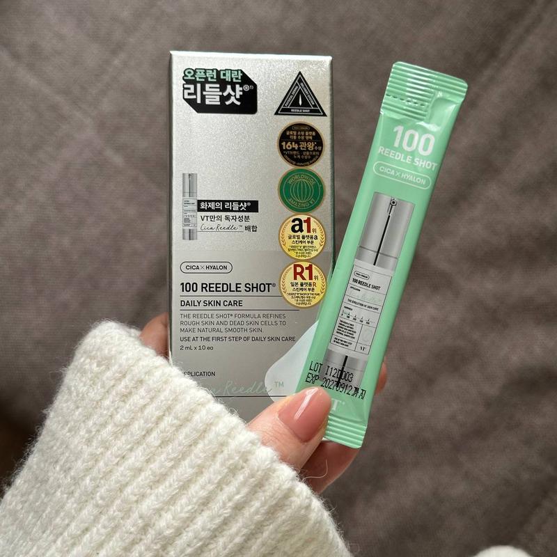 VT Cosmetics Reedle Shot 100 – это инновационный бустер для лица, использующий технологию микроигл для более глубокого проникновения активных ингредиентов в кожу. Это средство создано для стимуляции процессов регенерации и обновления кожи, а также для улучшения её текстуры и общего тонуса. Однако, из-за наличия микроигл, оно не рекомендуется для чувствительной и проблемной кожи, так как может вызвать раздражение. Новый продукт от VT Cosmetics был разработан в сотрудничестве с дерматологической клиникой Oracle в Сеуле. В бустере используются микроиглы, размер которых меньше пор кожи (Micro Needle), что обеспечивает лучшее впитывание и большую эффективность средства. Основным активным компонентом является экстракт Centella Asiatica, известный своими восстанавливающими и успокаивающими свойствами. Технология микроигл стимулирует клеточный метаболизм, что усиливает действие компонентов. Преимущества продукта: Стимулирует процессы регенерации и обновления кожи. Улучшает текстуру и внешний вид кожи. Способствует глубокому проникновению активных ингредиентов благодаря микроиглам. Идеально подходит для тех, кто хочет улучшить тонус кожи и бороться с признаками старения. Лёгкое покалывание при использовании – это нормально. Основные активные ингредиенты: CICA REEDLE — стимулирует кожный слой, активируя клетки и глубоко успокаивая кожу. 99% Pure Microneedle – чистые микроиглы, полученные путем многократной ферментационной очистки, что обеспечивает высокую степень фильтрации примесей. ВНИМАНИЕ: если у вас аллергия или проблемы с кожей, перед использованием протестируйте средство на небольшом участке. Не рекомендуется использовать с приборами для ухода за кожей, так как это может вызвать сильное раздражение. Людям с чувствительной кожей рекомендуется воздержаться от использования. Не применяйте на воспалённых или повреждённых участках кожи. Как использовать: На предварительно очищенную кожу лица лёгкими круговыми движениями нанесите сыворотку-бустер, избегая зоны вокруг глаз и губ. Для улучшения впитывания продукта приложите ладони к коже на несколько секунд.