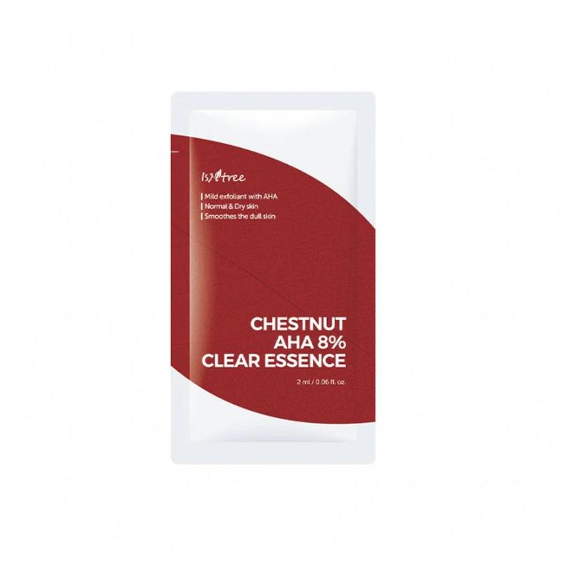 Обновляющая эссенция Isntree Chestnut AHA 8% Clear Essence мягко отшелушивает верхний слой клеток эпидермиса, удаляя ороговевшие, омертвевшие клетки, стимулируя протекание процессов восстановления. Эффективно выравнивает общий тон устраняет тусклость и покраснения. Эссенция осуществляет мягкий пилинг, улучшая цвет лица, оказывая успокаивающий и освежающий эффект. Бережно отбеливает избыточную пигментацию, очищает поры. Подходит для всех типов кожи, в том числе для чувствительной. 🌿 Основные компоненты: - Гликолевая кислота (4%) мягко отшелушивает омертвевшие клетки эпидермиса, стимулирует процессы обновления, осветляет, обеспечивает глубокое очищение. - Молочная кислота (4%) эффективно удаляет шрамы, следы от заживших глубоких прыщей, лечит высыпания, выравнивает микрорельеф, сужает поры, снимает воспаление. - Castanea crenata Shell Extract (каштановые корки) (10,000 ppm) - скорлупа каштана содержит большое количество танина, который отлично ухаживает за порами, поэтому обеспечивает укрепление пор, что обеспечивает чувство плотности кожи. - Глицерин обеспечивает увлажнение кожи глицерин забирают влагу из окружающей среды и притягивает её способен проникать вглубь эпидермиса напитывает влагой клетки все его слои - Экстракт шелковицы обладает ранозаживляющими свойствами, тормозит процесс образования меланина, благодаря чему происходит мягкое осветление кожи. Убирает темные круги под глазами, веснушки и пигментные пятна, сужает поры. ☝ Эссенция не имеет цвета и запаха, консистенция ближе к жидкости, легко распределяется по поверхности лица. Если на коже есть повреждения, может ощущаться пощипывание. Выпускается в флаконах с удобной помпой, при одном нажатии на помпу выдаётся количество эссенции, которого достаточного для одно применения. Эссенция проникает глубоко в поры, растворяет загрязнения и сальные пробки, устраняет тусклый цвет лица. Отшелушивает ороговевший слой кожи, сужает поры, выравнивает рельеф и нормализует водно-липидный баланс. Приминение: Нанесите эссенцию после очищения и тонера, дайте впитаться, смывать не нужно. Затем нанесите крем. Начинайте с одного применения в день. Для чувствительной кожи — 2-3 раза в неделю. Утром используйте солнцезащитный крем. Пробник: 2 мл.